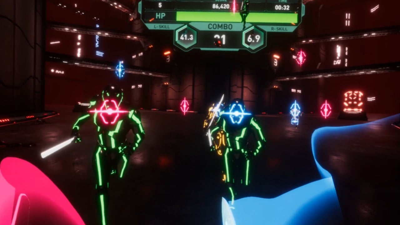 Сеттинг — футуристический неоновый киберпанк-мир с яркими огнями, стремительными боями и ощущением полной свободы движений. Атмосфера Bladeline VR заставляет сердце биться чаще: каждый точный удар меча, каждое идеальное комбо приносит огромный кайф и бонусные очки. Геймплей построен на реальных движениях рук — махайте мечами двумя руками независимо, уклоняйтесь, парируйте, набирайте комбо и поднимайтесь в таблице лидеров.