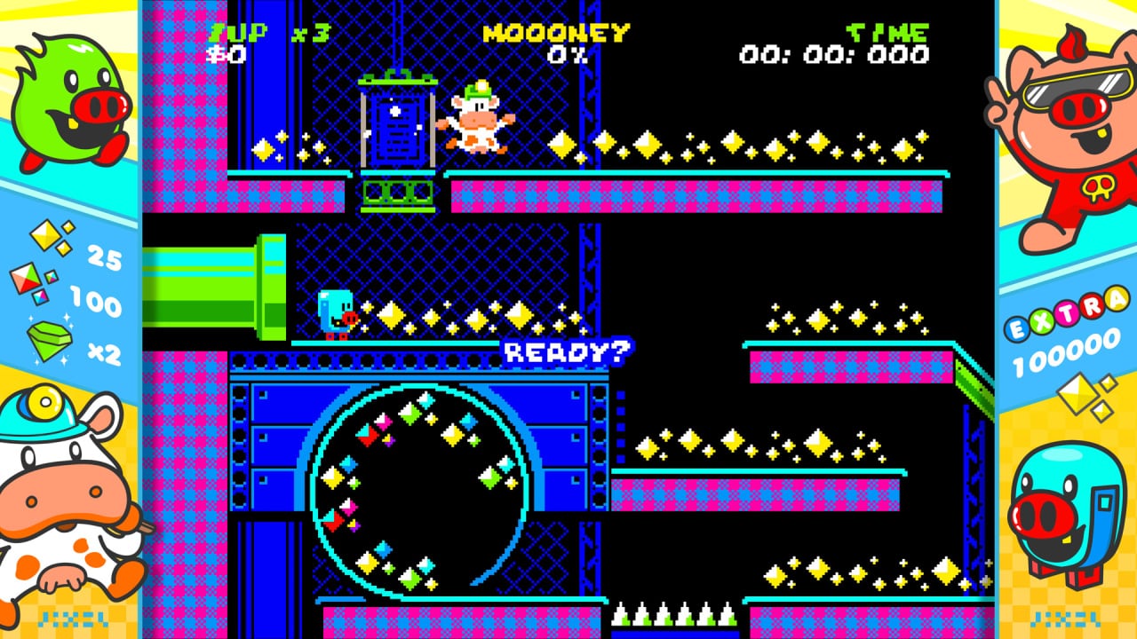 В Cash Cow DX скачать торрент вы отправитесь в захватывающее приключение: жадные свиньи Pig Pockets под предводительством диско-короля Party Piggy ограбили главную героиню — смелую корову Cash Cow, украв все её богатства. Чтобы вернуть свои деньги, Cash Cow пробирается через опасные шахты, лабиринты и многоуровневые локации, полные ловушек и врагов. Скачать Cash Cow DX торрент бесплатно — значит погрузиться в настоящий хардкорный платформер в духе золотой эпохи аркад!