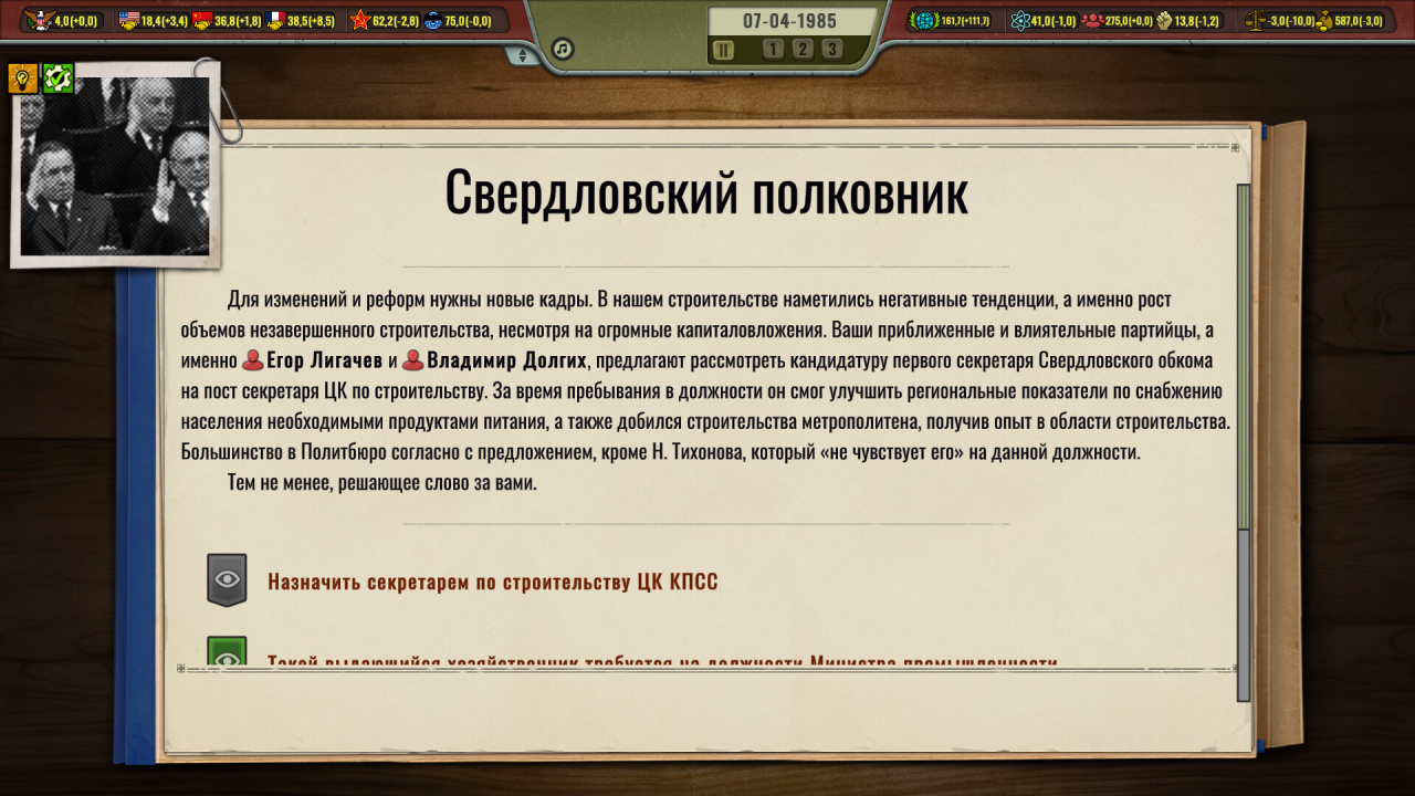 Crisis in the Kremlin: The Cold War скачать торрент — лучший способ получить полную версию захватывающей политической стратегии на ПК прямо сейчас! Crisis in the Kremlin: The Cold War скачать бесплатно без регистрации и смс, Crisis in the Kremlin: The Cold War скачать торрент бесплатно на русском языке в последней версии. Crisis in the Kremlin: The Cold War скачать торрент на русском — это полная версия игры 2025 года от Nostalgames, где вы возглавляете Советский Союз в 1985 году и пытаетесь предотвратить распад великой державы. Crisis in the Kremlin: The Cold War торрент позволяет скачать игру бесплатно для PC с полной русской локализацией. Погрузитесь в атмосферу конца холодной войны: управляйте экономикой СССР, проводите перестройку или укрепляйте социализм, балансируйте между фракциями Политбюро, ведите дипломатию с США и НАТО или начинайте прокси-войны. Сюжет полон альтернативной истории — от сохранения СССР и победы над Западом до демократических реформ или тотального краха. Геймплей в реальном времени включает управление бюджетом, научными разработками, КГБ, армией, народными настроениями, законами и событиями вроде Чернобыля, афганской войны. Десятки веток развития, сотни решений и концовок. Crisis in the Kremlin: The Cold War скачать торрент бесплатно — это аутентичная графика в стиле 80-х с современным интерфейсом, отличная оптимизация, атмосферный саундтрек эпохи и звуки Кремля. Игра идеальна для фанатов глубоких симуляторов вроде Tropico, Victoria или Hearts of Iron, но с уникальным фокусом на советскую политику. Crisis in the Kremlin: The Cold War скачать бесплатно торрент полную версию на русском — последняя сборка без вирусов, высокая скорость раздачи. Не упустите шанс переписать историю холодной войны! Скачайте Crisis in the Kremlin: The Cold War торрент на русском бесплатно и станьте Генсеком, который спасет или изменит мир навсегда!На данной странице Вы можете скачать Crisis in the Kremlin: The Cold War бесплатно через торрент на максимальной скорости, полная версия без ограничений по кнопке ниже
