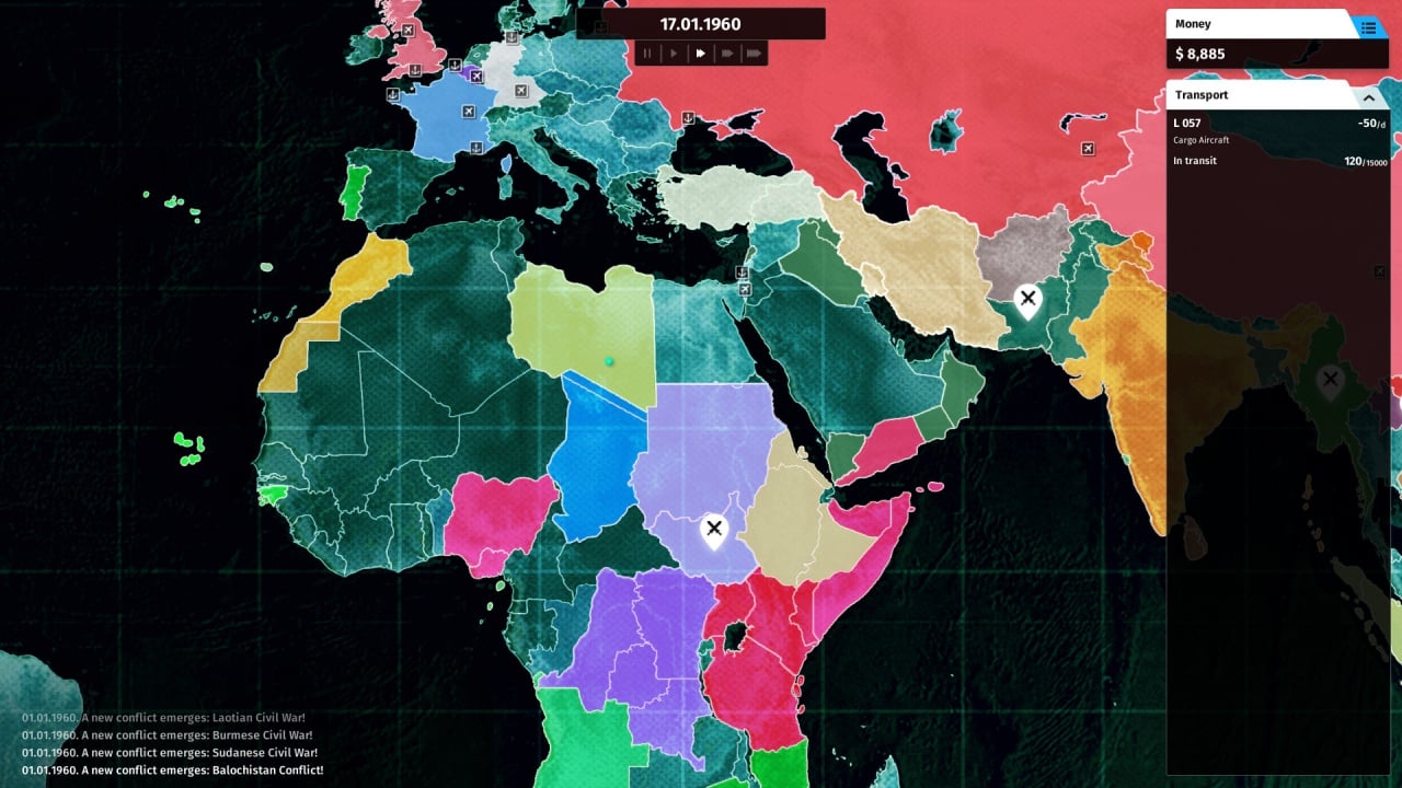 Локации представлены глобальной картой мира, где происходят события и заключаются сделки. Разные регионы отличаются уровнем риска, спросом на оружие и политической нестабильностью.