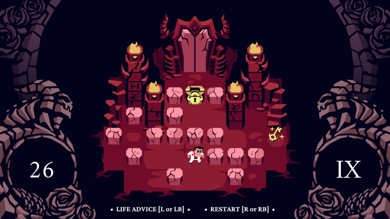 Игровой процесс строится вокруг пошаговых головоломок. Игрок перемещается по клеткам, толкает объекты, избегает ловушек и рассчитывает свои действия, так как количество ходов ограничено. Helltaker игра для ПК требует логического мышления и планирования, особенно на более сложных уровнях, где каждая ошибка может привести к перезапуску.