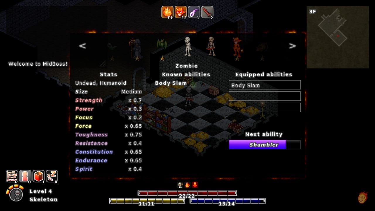 Игровой процесс строится вокруг пошаговых перемещений, исследования этажей, сбора предметов и тяжёлых тактических боёв. Главная механика — possession system. Побеждая врага, игрок может вселиться в его тело и получить новые характеристики, навыки и способности. MidBoss игра для ПК позволяет буквально менять класс персонажа по ходу прохождения десятки раз, комбинируя лучшие умения разных существ.