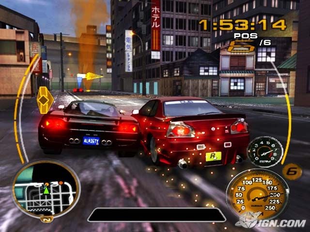 Midnight Club 3: Dub Edition REMIX — культовая аркадная гонка от Rockstar Games. Открытые города США (Сан-Диего, Атланта, Детройт) и Япония (Токио) без загрузочных экранов, динамические трассы, сотни shortcuts через дворы, парковки и стройки. Ночное освещение, неон, толпы зрителей и мощный саундтрек из 124 треков — всё создаёт неповторимую атмосферу уличных гонок.