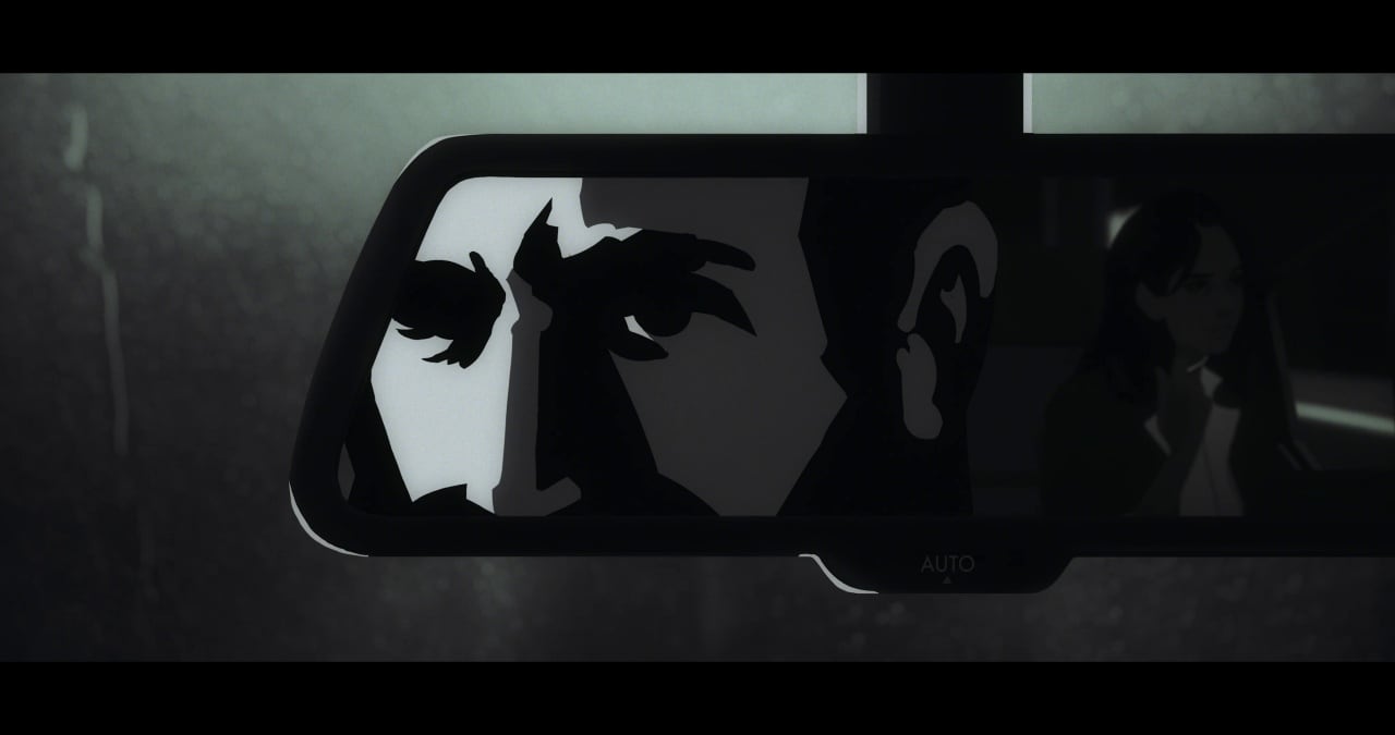Графика выполнена в контрастном чёрно-белом стиле с яркими цветными акцентами. Такой визуальный подход подчёркивает нуарную атмосферу детективного расследования и создаёт ощущение ночного города, полного тайн и скрытых историй.