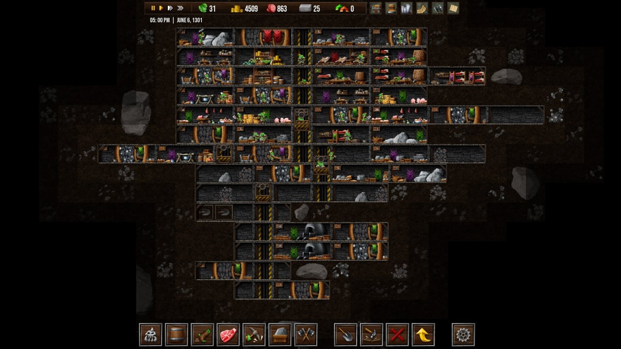 Важную роль играет экономика. Игрок добывает серебро, золото, изумруды, а также металлы для изготовления оружия и брони: медь, железо и мифрил. Грамотное распределение ресурсов напрямую влияет на развитие базы и силу армии. Можно строить лифты между уровнями подземелья, ускоряя логистику и расширяя территорию.