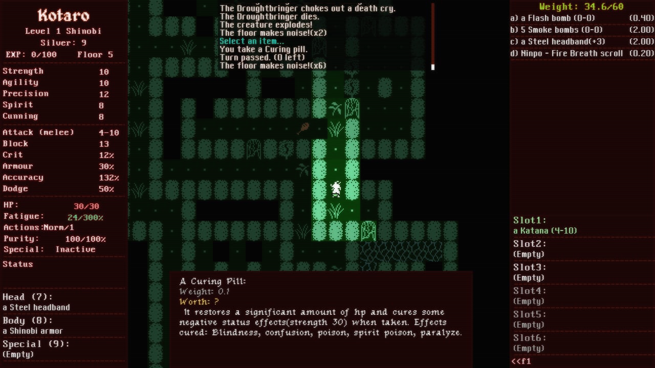 Shadowed: The Demon Castle of Ooe — это классический традиционный рогалик в духе Angband и Nethack, но с уникальным сеттингом феодальной Японии. Скачать бесплатно Shadowed: The Demon Castle of Ooe торрент — значит получить полную игру без ограничений: процедурная генерация уровней, пермадэт, стелс, тактические бои катаной и ниндзя-способности. Атмосфера густого тумана, демонических криков и теней создает невероятное напряжение.