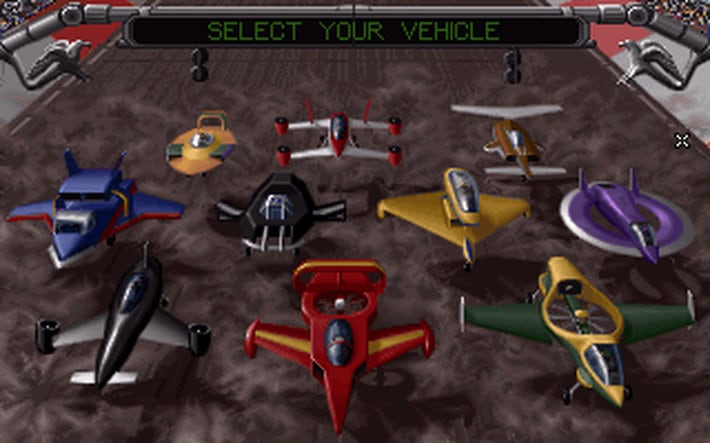 Геймплей — смесь аркадных гонок и воздушного боя: собирайте power-ups (ракеты, лазеры, мины, электромагнитные импульсы), используйте турбо-ускорение, уничтожайте соперников, чтобы первым пересечь финиш. После каждой гонки улучшайте свой корабль: скорость, маневренность, броня, оружие — всё влияет на результат в чемпионате. Атмосфера игры пропитана адреналином 90-х: взрывы, крики толпы, мощный саундтрек и реалистичные (для того времени) 3D-графика с текстурами и динамическим освещением. Звук полёта, выстрелов и двигателей до сих пор впечатляет.