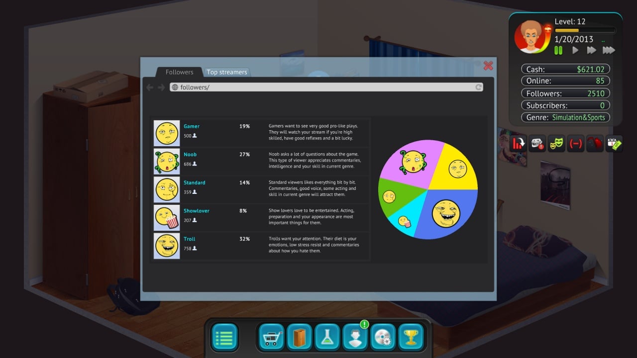 Локации игры разнообразны: квартира стримера, студия, игровые конференции и виртуальные события. Каждая зона предлагает интерактивные элементы, влияющие на эффективность и качество трансляций.