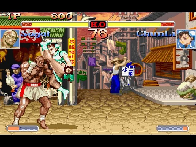Мировой турнир Street Fighter: 16 легендарных бойцов, включая Ryu, Ken, Chun-Li, Zangief, Blanka, Dhalsim, Cammy, Fei Long, Dee Jay, T. Hawk, Vega, Balrog, Sagat, M. Bison и скрытого демона Akuma. Каждый герой имеет уникальные приёмы, супер-комбо и личную историю. Атмосфера — чистый адреналин 90-х: крики толпы, неоновые вывески, разрушаемые фоны и эпичные саундтреки.