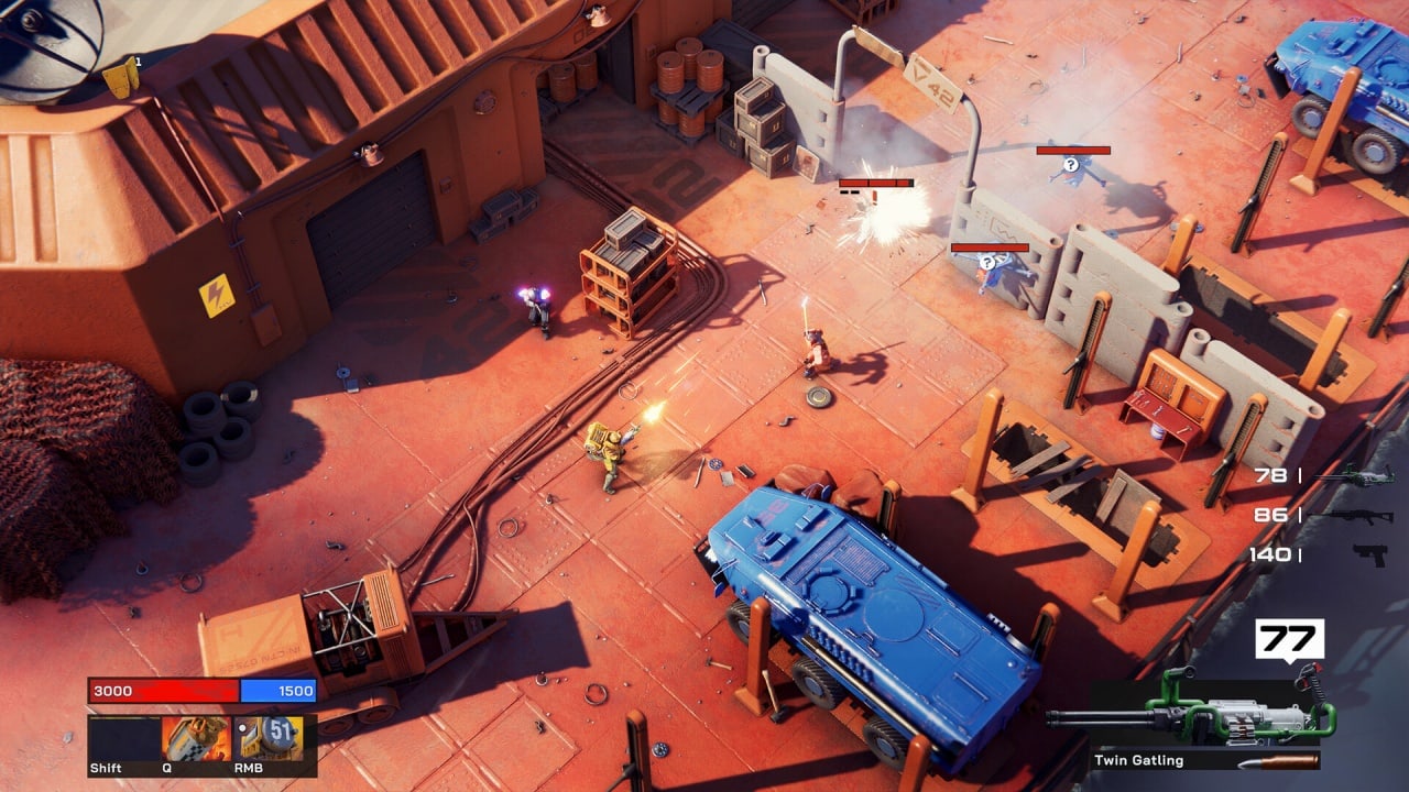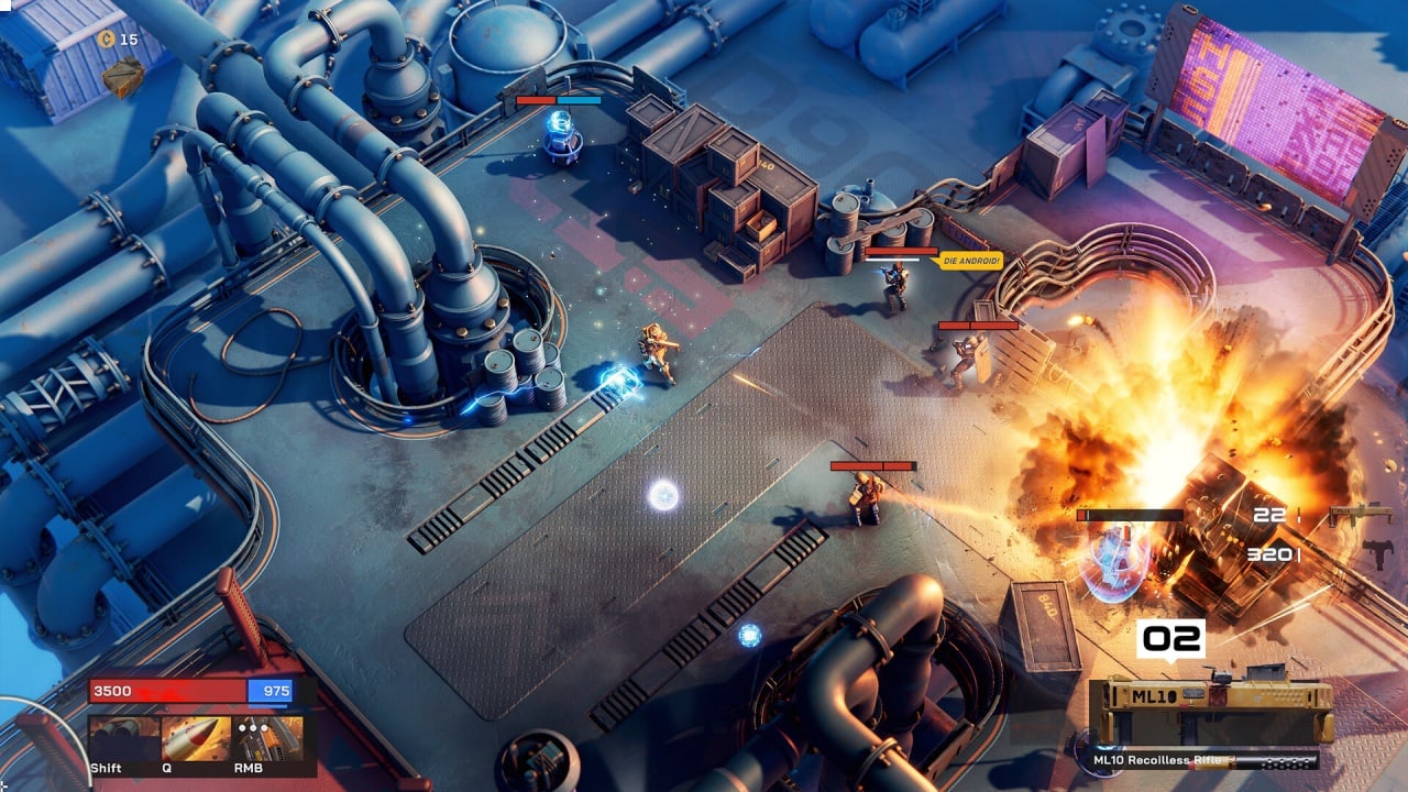 Графика в SYNTHETIK 2 игра для PC на высоте: переход к полноценному 3D-изометрическому виду с детализированными моделями, динамическим освещением, тенями и эффектами разрушения. Звук идеально дополняет экшен — реалистичные выстрелы, перегрев оружия, мощный electro саундтрек и крики погибающих машин создают полное погружение.