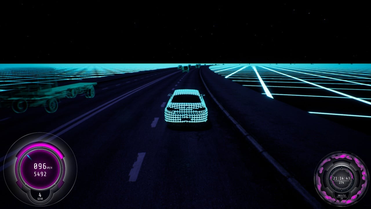 Геймплей Synthwave Burnout — это чистый кайф от скорости: захватывайте звуковые волны, разгоняйтесь до предела, синхронизируйте свой суперкар с битом синтвейв-саундтрека. Никаких строгих правил, только свобода движения, неоновые трассы разных локаций и полное погружение в атмосферу старых VHS-фильмов и кассетных плейлистов.