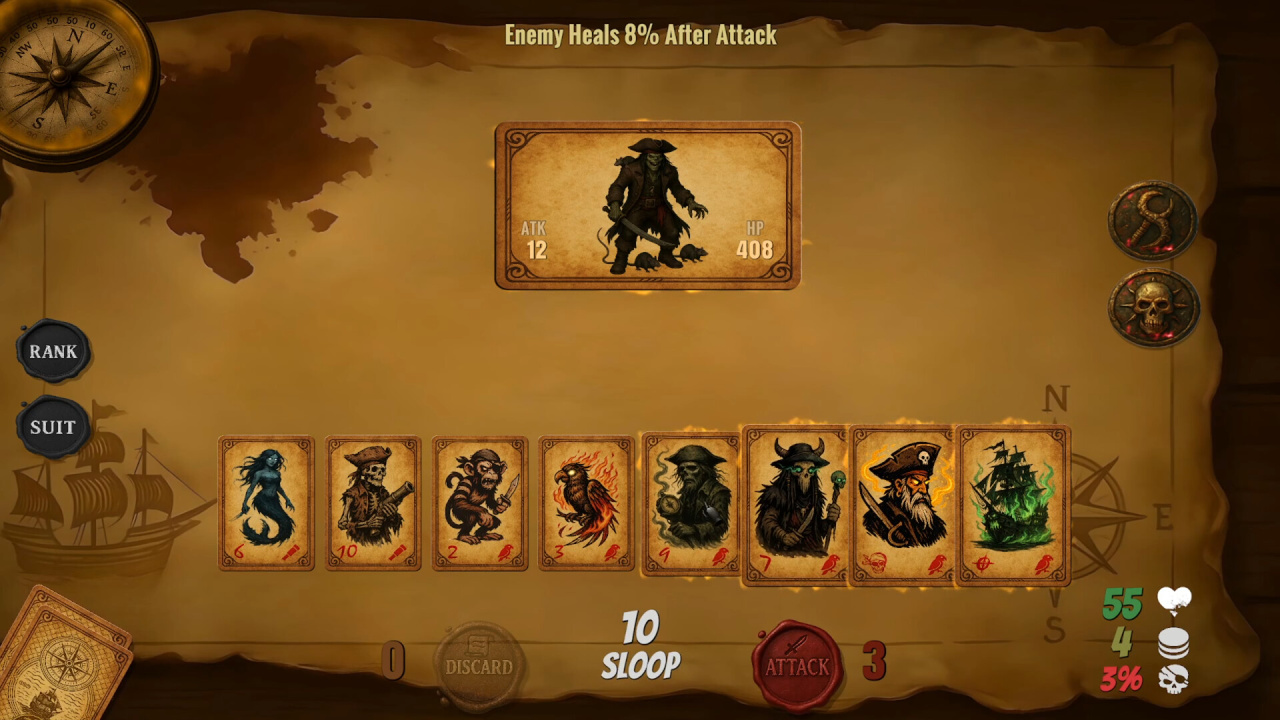 Геймплей построен на механике покера в roguelike-формате: собирайте карты, создавайте пары, две пары, сеты, стриты, флеши, каре, фулл-хаусы и роял-флеши. Покупайте cursed coins для усиления очков комбо, проходите процедурно генерируемые раунды с боссами и случайными событиями. Каждая смерть — это новый старт с новыми возможностями и стратегиями.