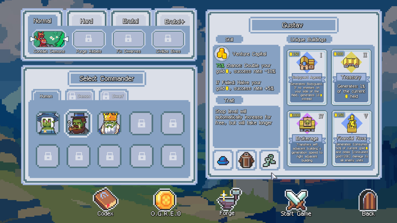 Сеттинг — фантастический мир, где нет ни одного орка, но полно эпичных сражений между людьми, демонами и гномами. Атмосфера напряженная и ироничная одновременно: быстрые roguelike-прогоны, автобои в реальном времени и тысячи комбинаций для каждого прохождения. Выберите командира, соберите синергию из более 30 уникальных героев, 100+ реликвий и постройте непробиваемую оборону.