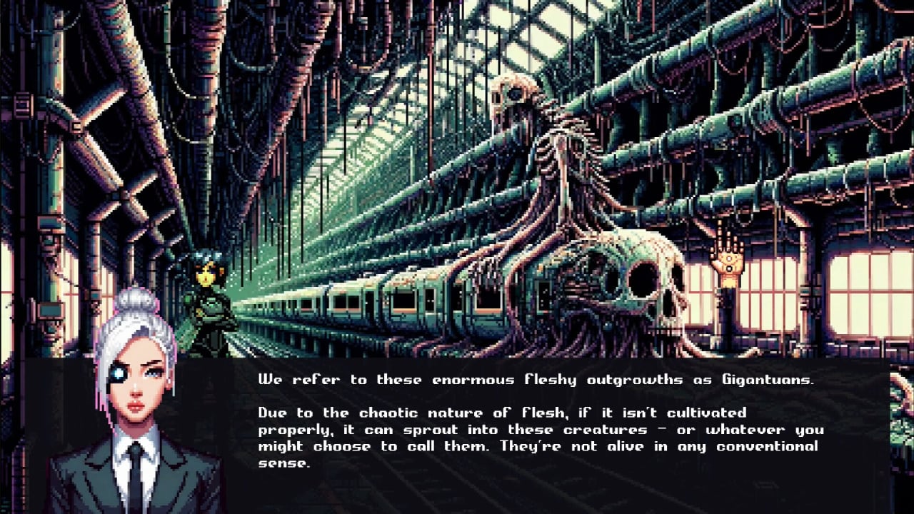 Атмосфера пропитана синтвейвом, религиозными символами в неоновом свете, философскими диалогами о свободе, контроле, ИИ и божественном. Полная озвучка персонажей, мощный саундтрек и детализированная пиксель-арт графика на движке Unity делают игру незабываемой.